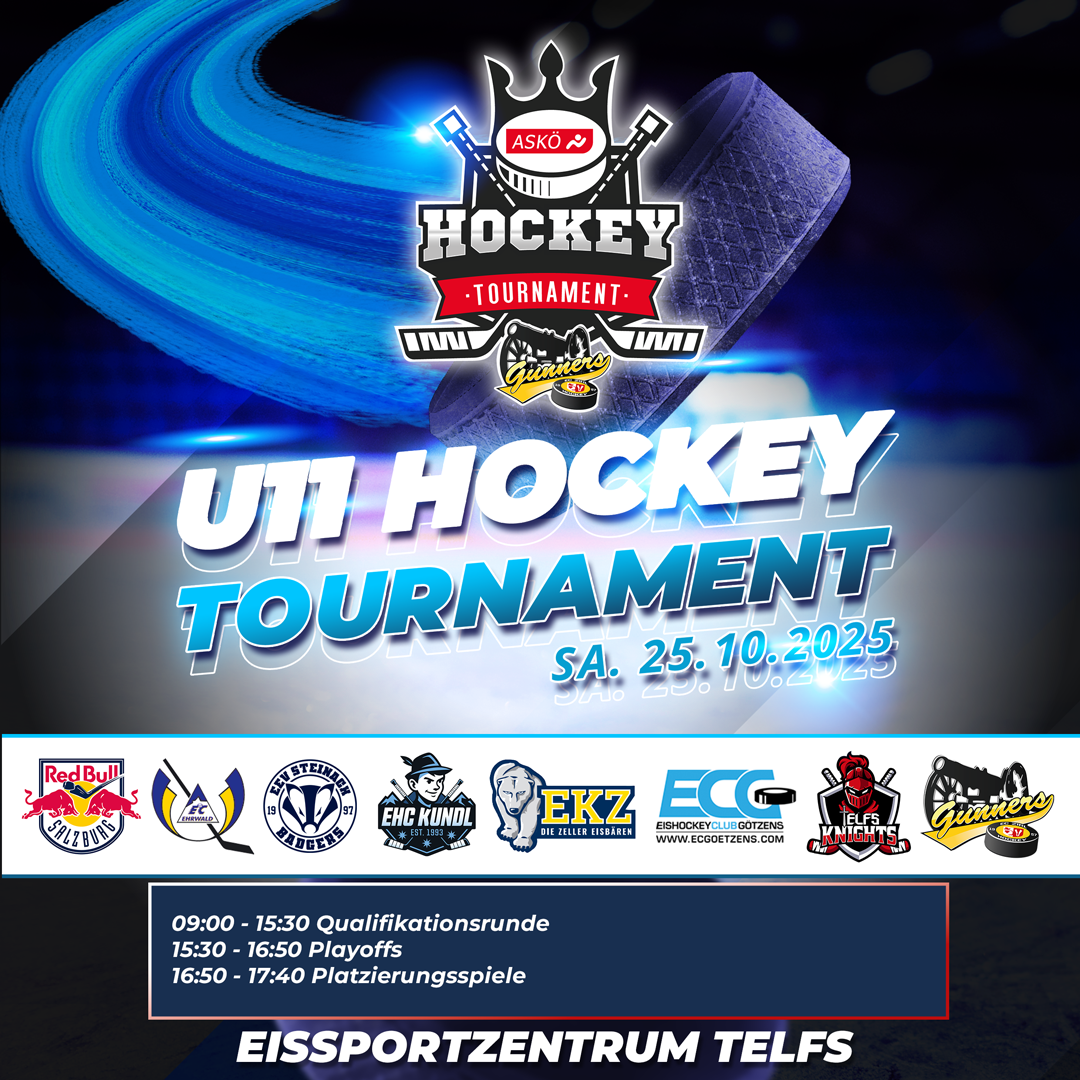 Am Samstag, den 25. Oktober, steigt in Telfs unter der Schirmherrschaft der ASKÖ ein großes Turnier für die Altersklasse U11. Der EC Gunners fungiert als Organisator und wird dabei von den Telfs Knights unterstützt. Ab 9 Uhr kreuzen acht Teams und mehr 120 Kids die Schläger.